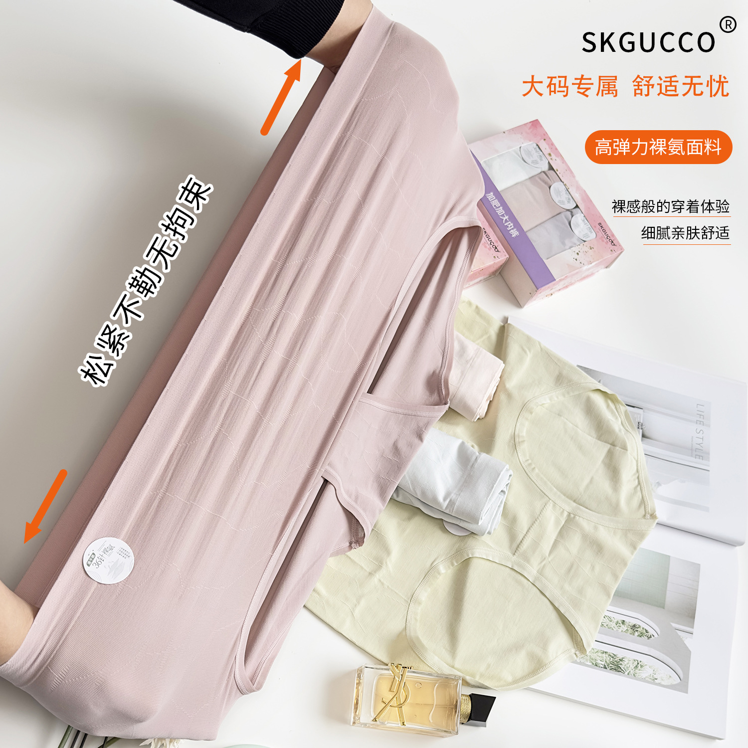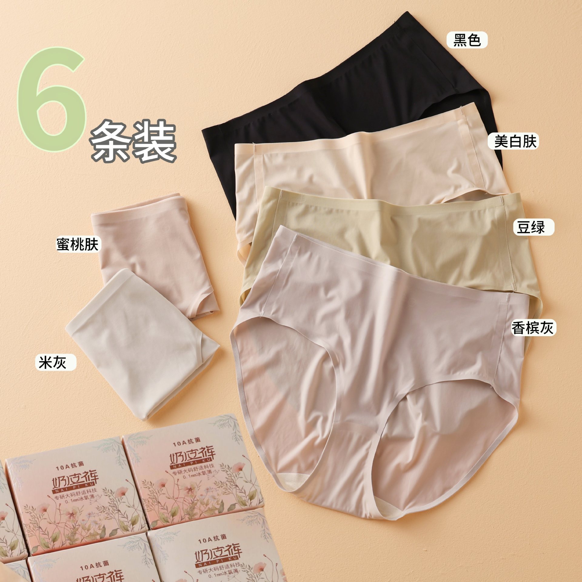 プラスサイズの女性のシームレスなミルクスキン下着 10A 抗菌超薄型高弾性ハイウエスト目に見えない三角ショーツ口紅下着