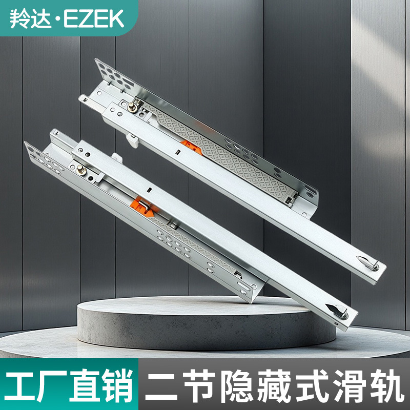 厚みのある2セクションの隠し緩衝スライドレール引き出しボトムレールサイレント緩衝ダンピングレール2セクションボトムスライドレール