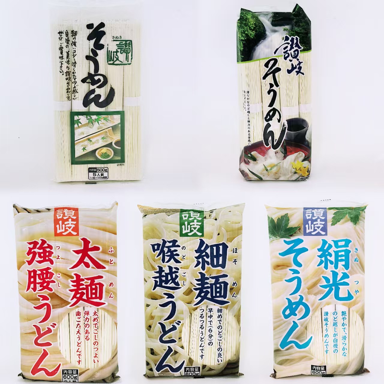 日本讃岐细そうめん素麺500g绢光细そうめん300g细うどん太うどん600gヌードル