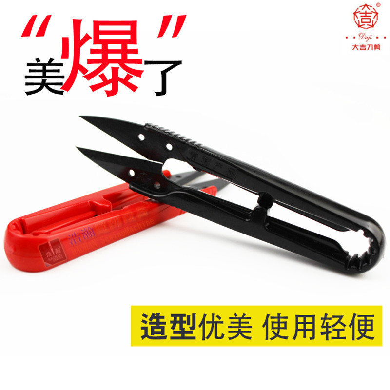 家庭用小型はさみ プラスチックハンドル 糸はさみ 糸切りはさみ U字型はさみ 黒、白、赤 3色 DJ-107 シングルハンドル