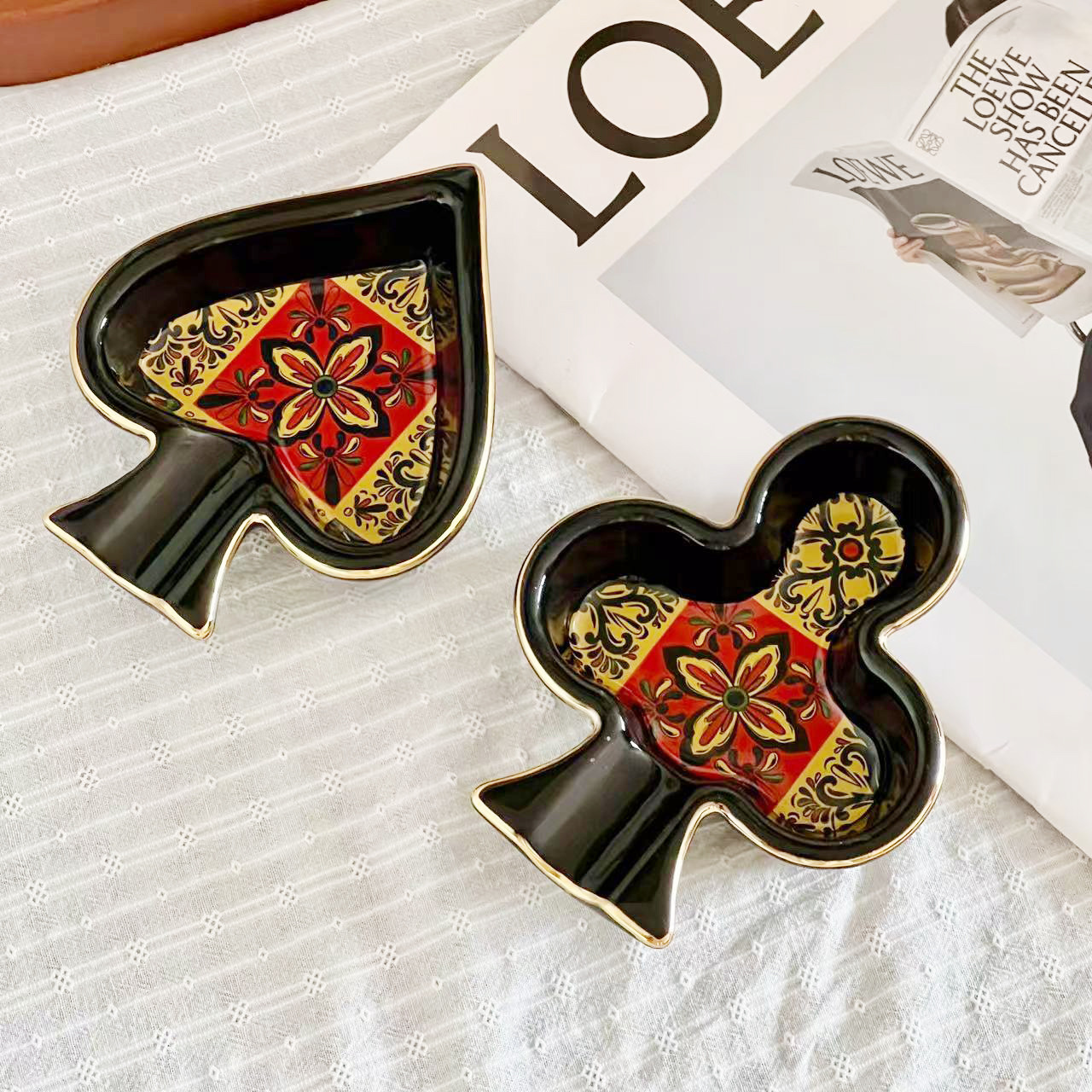 葉巻灰皿シングルポーカーレッドハート黒梅ヨーロッパセラミック灰皿ホームウェディングバーレストラン装飾