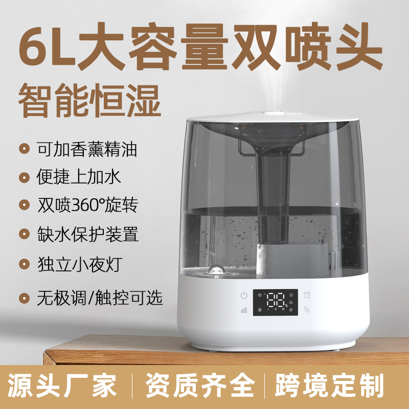 6Lダブルスプレー大霧量加湿器、家庭用大容量スマート恒湿空気清浄アロマ加湿器