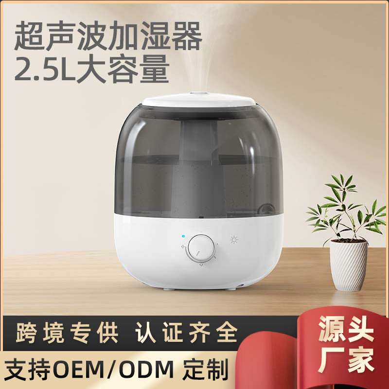 新型2.5L大容量超音波卓上加湿器 家庭用 上部給水式空気加湿器 大霧量
