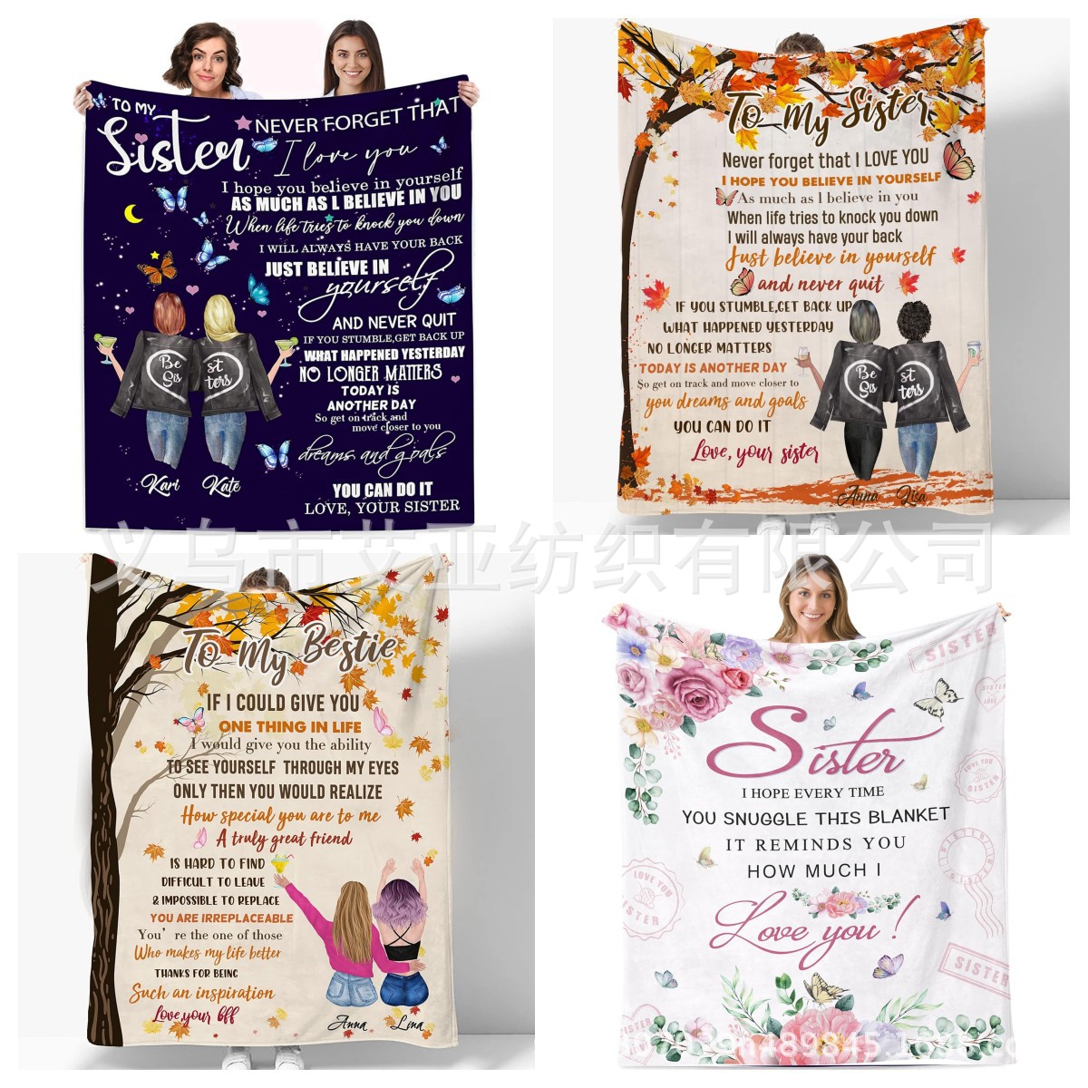 国境を越えて、親友の毛布姉妹にフランネルの厚い毛布をプレゼントするデジタルプリント毛布のカスタマイズ