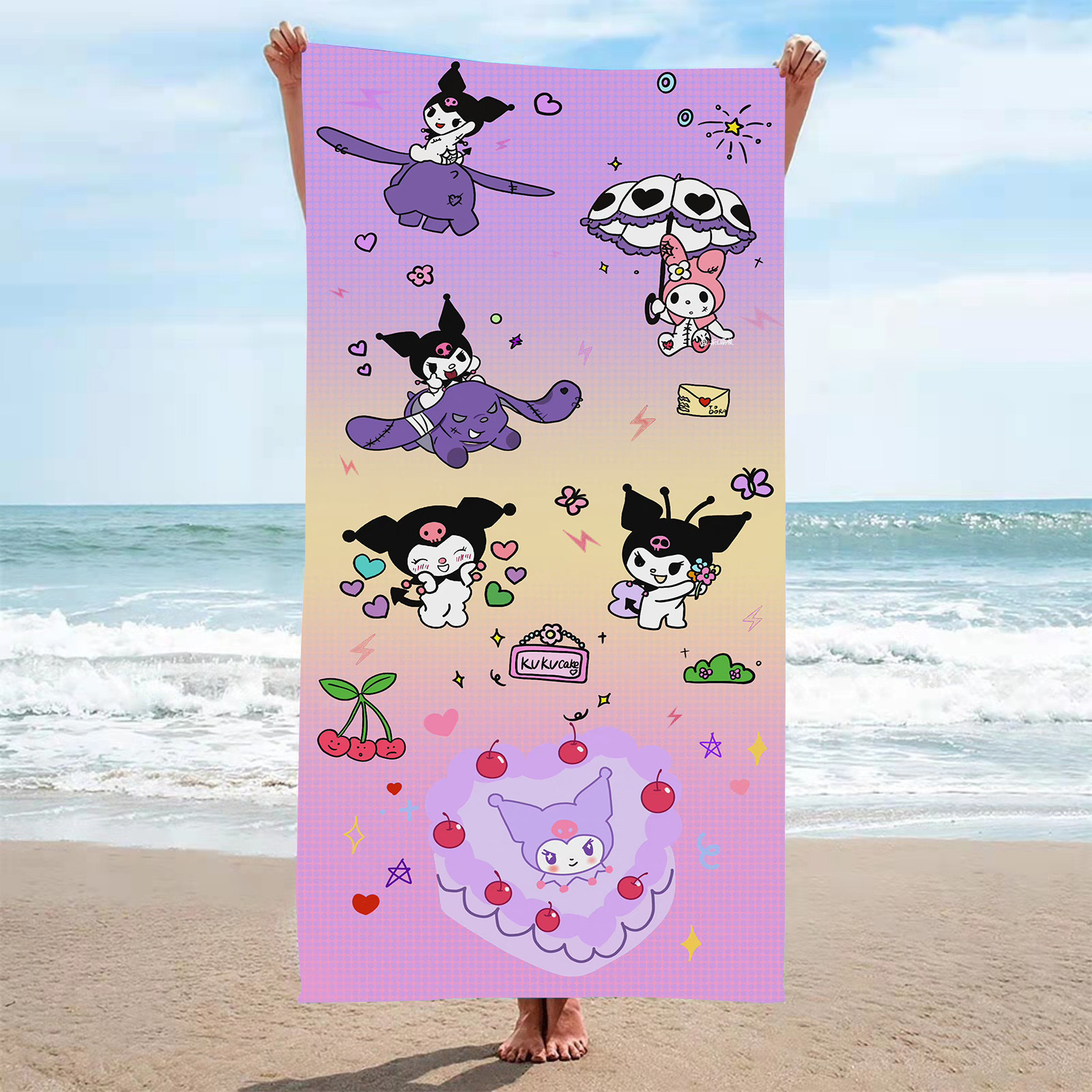 アマゾンクロスボーダー熱売極細繊維ビーチタオルアニメデジタルプリント四角いバスタオルストール