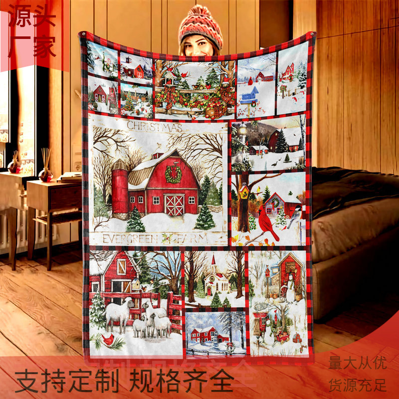 2022クリスマス新製品毛布冬保温寝毛布クリスマスプリントフランネル毛布祝日プレゼント