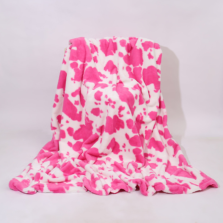 Ins専用乳牛紋プリント毛ピンク毛布オフィス昼寝ブランケットエアコンソファーブランケットフランネル毛布