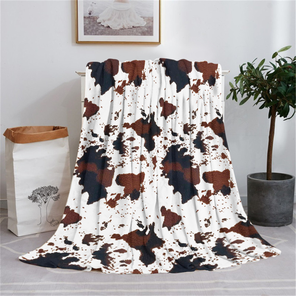 アマゾン乳牛プリント児童成人柔らかいフランネル毛布茶色黒白色乳牛模様毛布