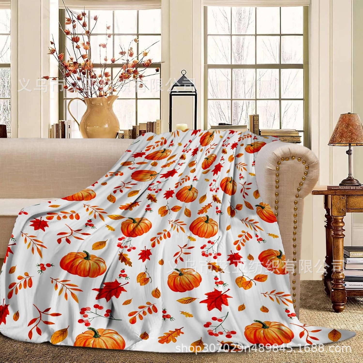 ハロウィンカボチャカエデの葉プリントカジュアルスモールブランケットフランネルソフトブランケット昼寝ブランケットエアコンブランケットベッドブランケット