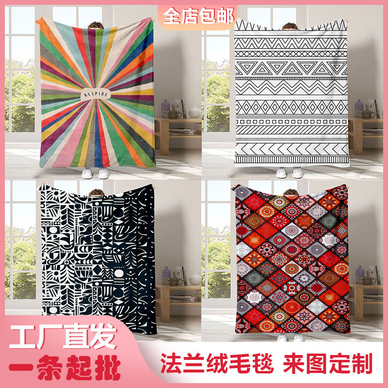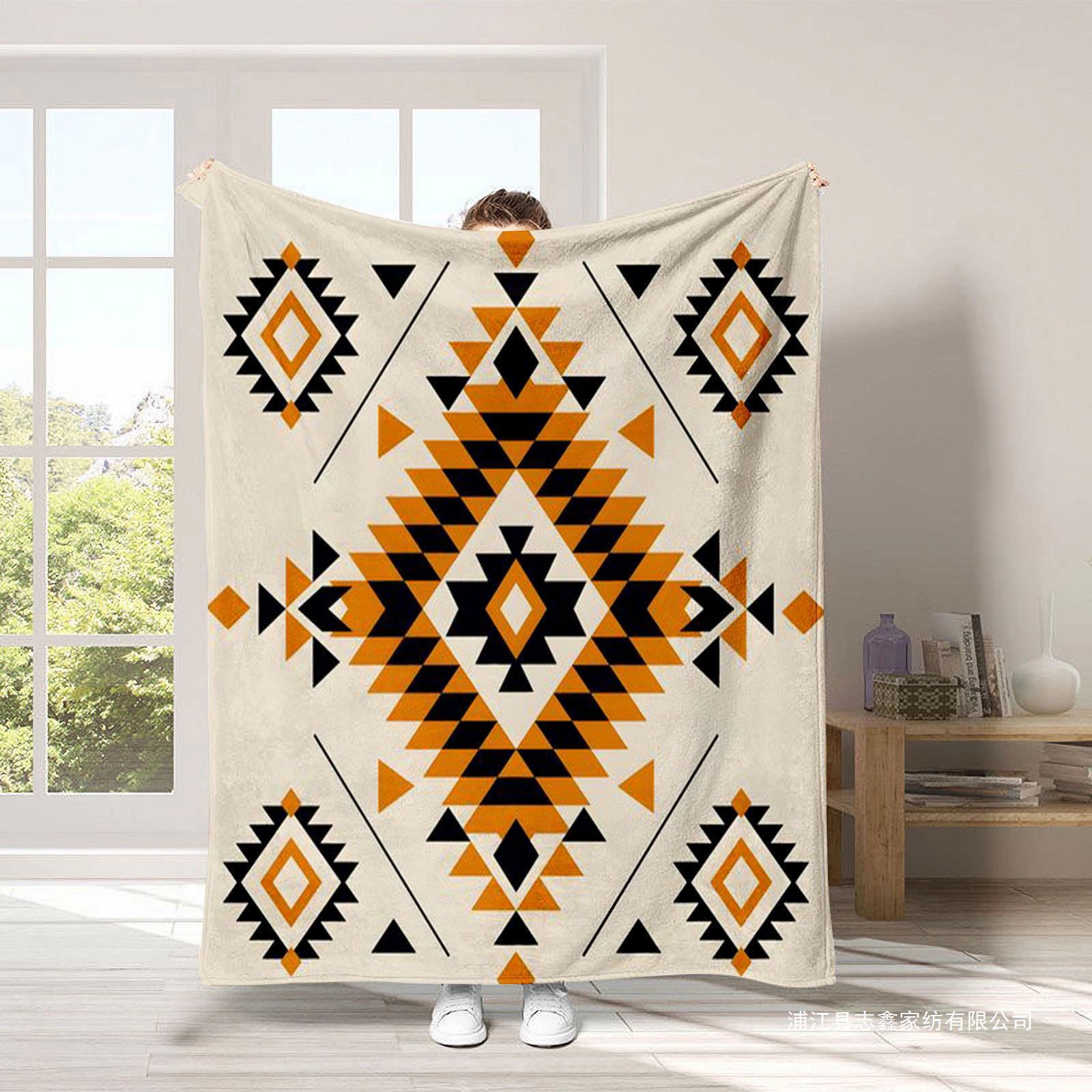 2024新型アマゾンフランネル民族模様国潮風夏のエアコンは昼寝で足のマント毛布をかぶせた