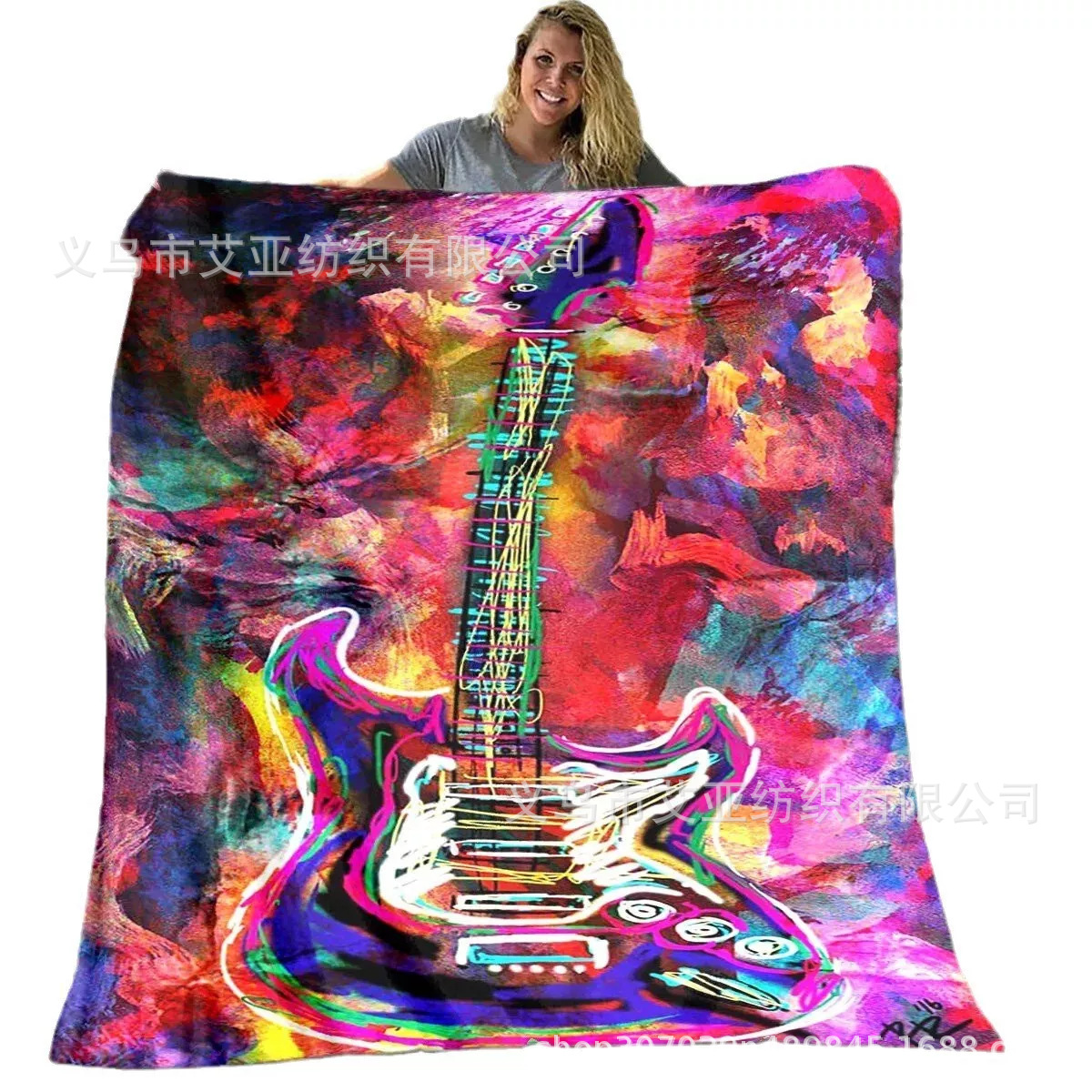 音楽ギター模様フランネル毛布プリント毛布柔らかい快適ベッド毛布エアコン毛布クロスボーダー代発