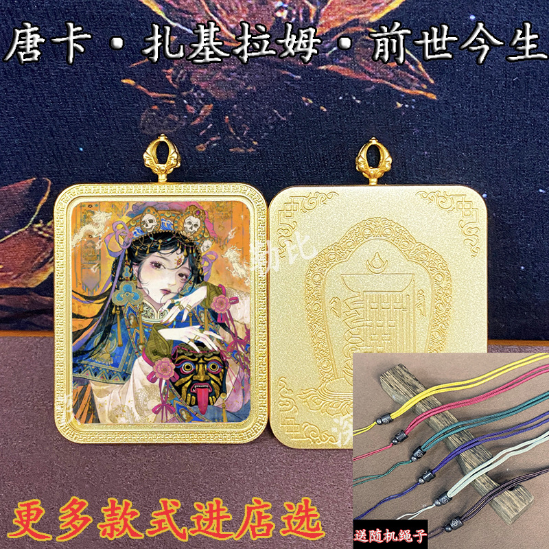 新唐卡ペンダント チベット仏像お守り ザキラム前世今生小唐卡 ガウボックス 金箔仏縁