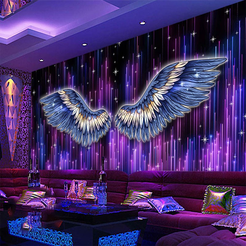 Ktvバーのトランクの壁紙のカラフルな翼の壁画の星空の背景の壁紙の反射の壁の布のネットの赤い装飾の壁の布