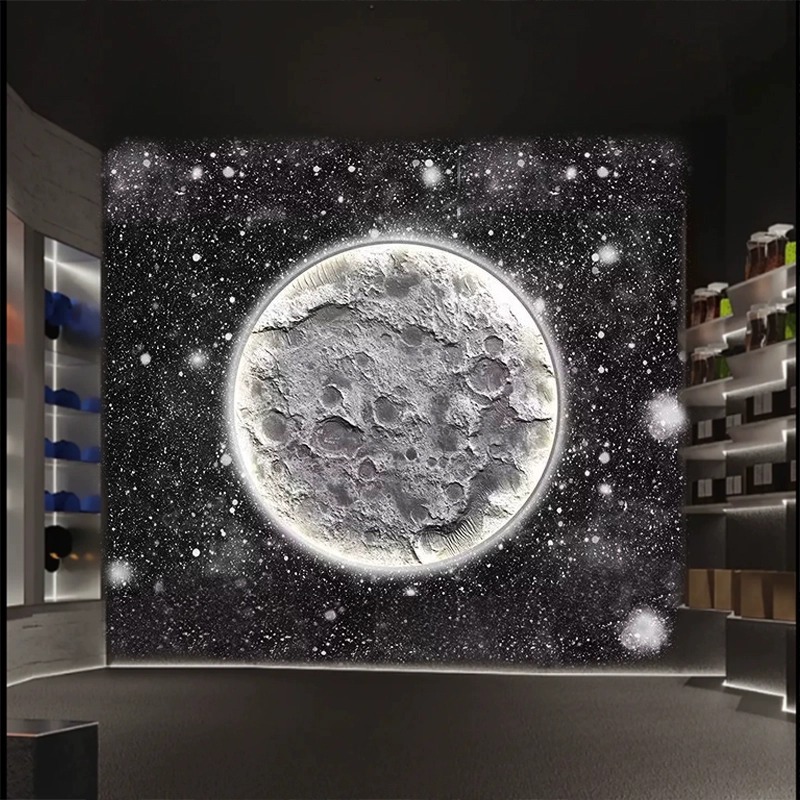 3d立体凹凸月面背景壁紙バー清吧壁布ネット赤コーヒーミルクティー店カード壁紙