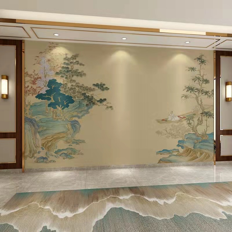 新しい中国式のテレビの背景の壁の壁紙の軽い豪華な客間の境地の山水のソファーの壁の布の壁画の寝室のシームレスな壁紙