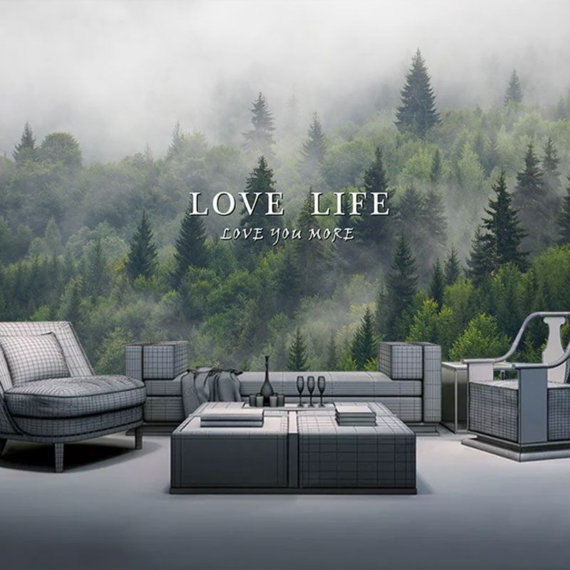 北欧森林大自然風景画8d立体客間壁紙田園境地山水テレビ背景壁壁紙