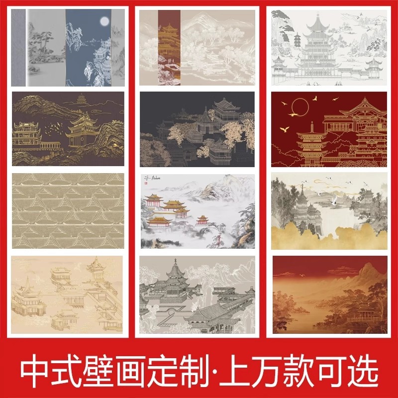 壁紙カスタマイズされた新しい中国風のパビリオンテレビの背景壁布リビングルームの壁紙ソファ装飾壁布壁画