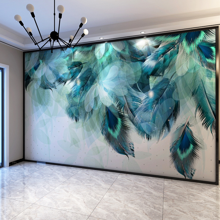 北欧テレビ背景壁壁紙リビングソファ羽ウォールアートモダンシンプル装飾壁紙ビデオ壁壁布