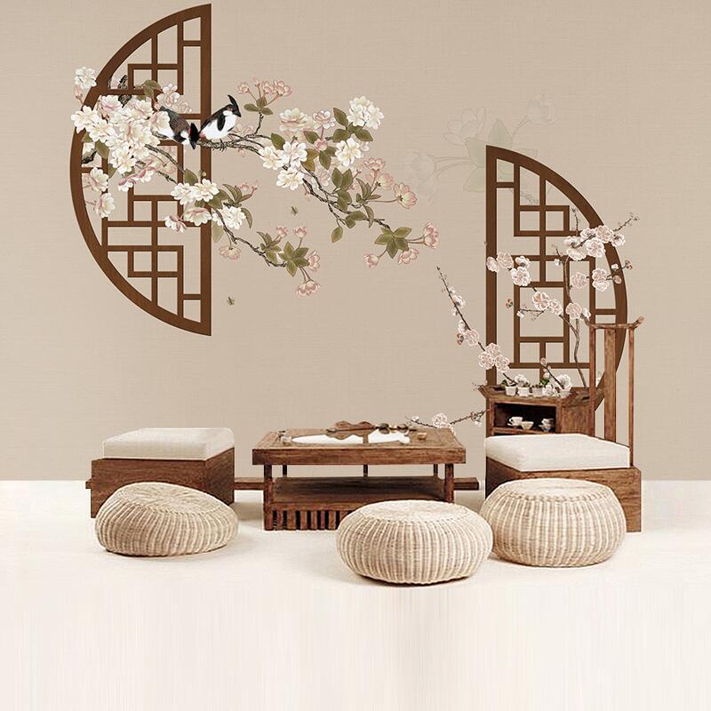 8d手描き中国風古典シンプル花鳥壁紙中国風客間背景壁壁紙火鍋店レストラン壁画