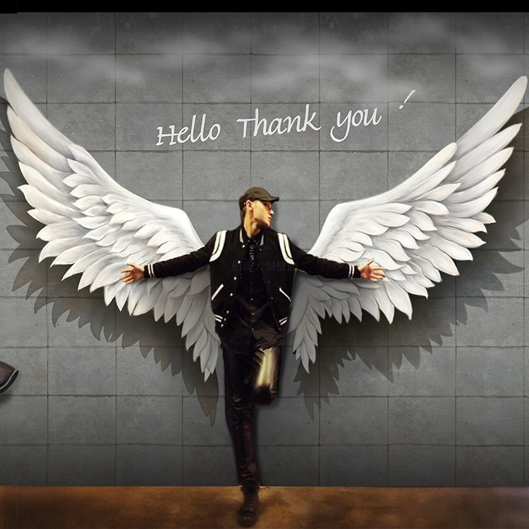 工業風の翼の壁紙のレストランのバーの壁の壁紙の壁画の3d立体の天使の落書きのネットの赤い背景の壁の布