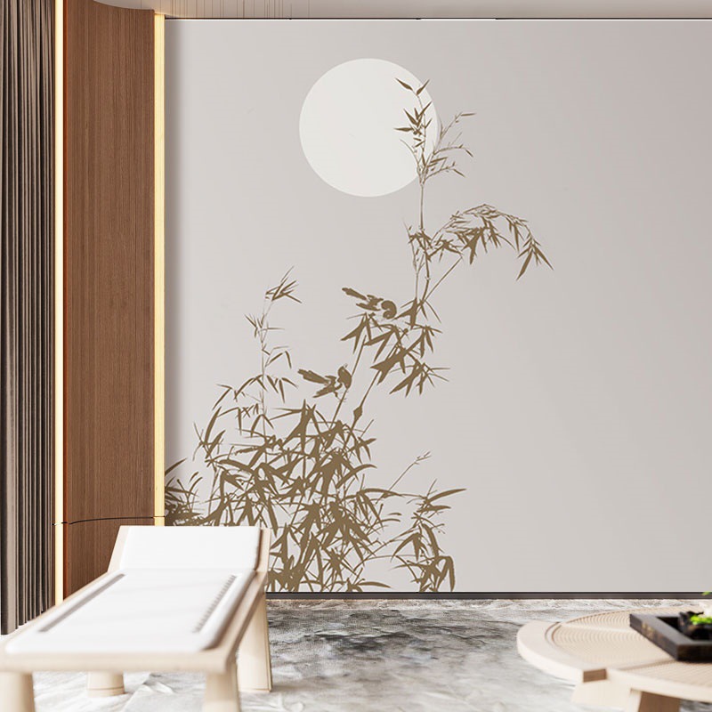 中国式芸術水墨竹背景壁紙書斎寝室茶室壁布円月境地竹影禅意壁紙