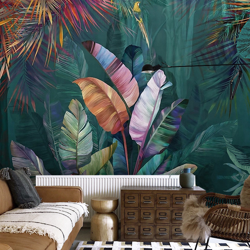 東南アジアバナナの葉壁紙動物背景壁布熱帯雨林壁紙森林緑植レストランホテル壁画