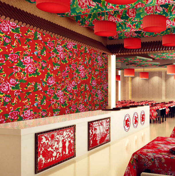赤い牡丹の花の布の壁紙の農村の飲食のホテルの背景の布の特色の風格の装飾のホテルの居酒屋の壁紙