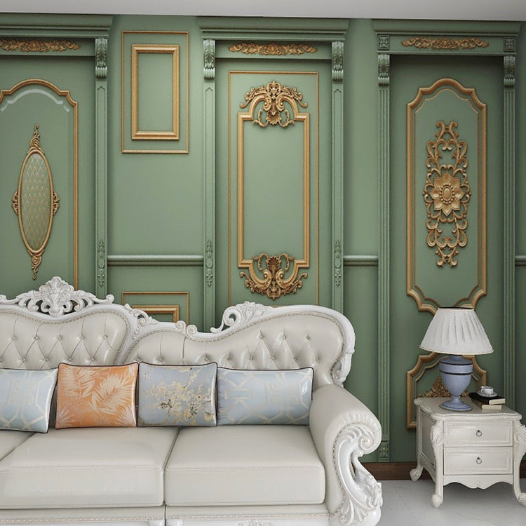 18d立体ヨーロッパ風墨緑壁紙リビングソファーシームレス壁布テレビ背景軽贅沢レトロ壁紙壁画