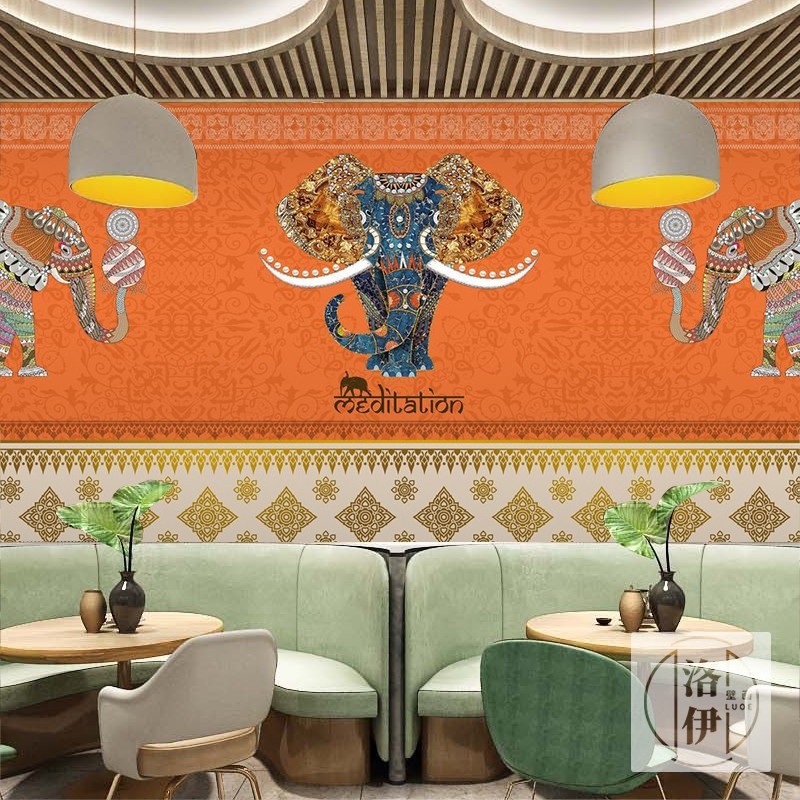 東南アジア風タイ風象壁画背景壁壁紙タイ風情レストランヨガマッサージ店壁紙3d