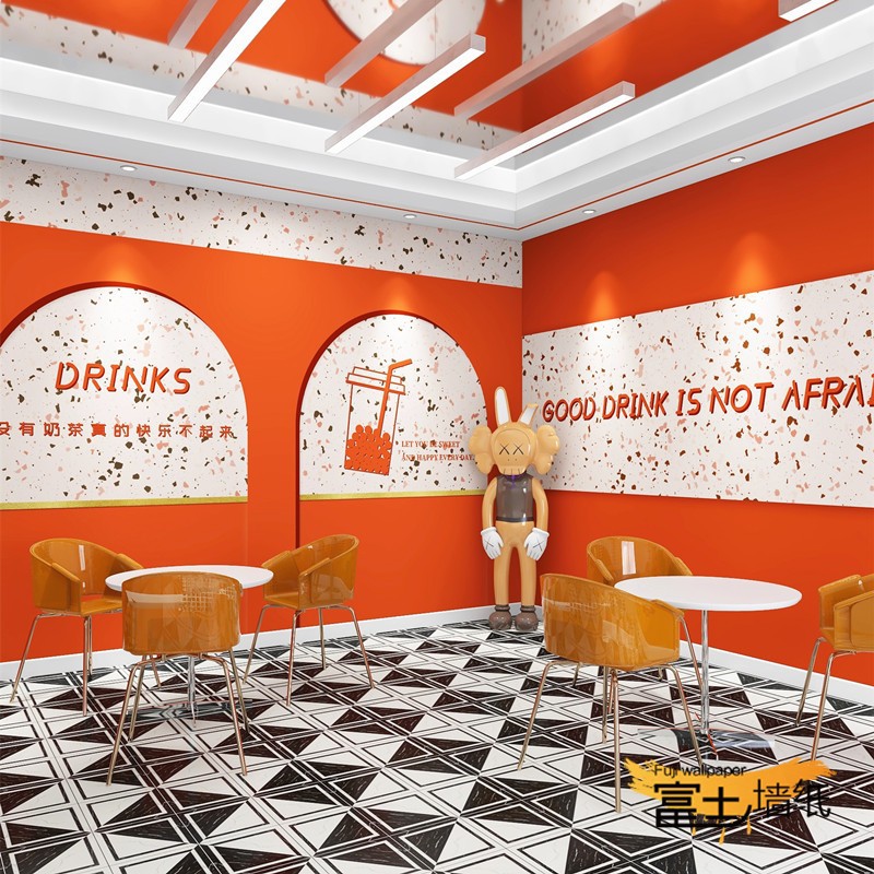 エルメスオレンジミルクティー店カフェ壁紙麻雀館棋牌室壁布シンプル写真カード壁紙