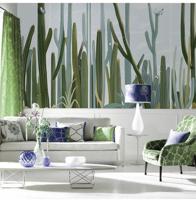 田園植物北欧風壁紙シンプル芸術清新壁布サボテンホテル寝室民宿背景壁紙