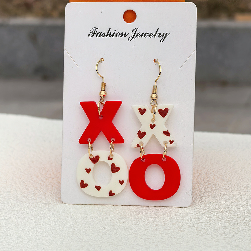 国境を越えたバレンタインデーのアクリル塗装イヤリングXO文字衝突色愛プリント耳飾り桃心ファッション耳飾り女