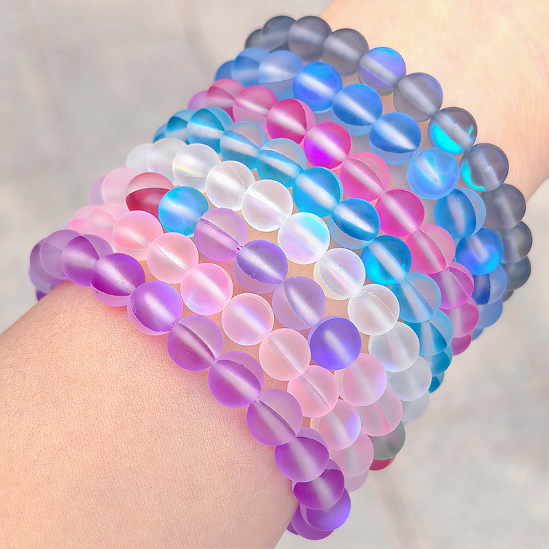 メーカー直供亜光幻彩閃光フロストins小群金8mm合成月光石ブレスレット卸売り