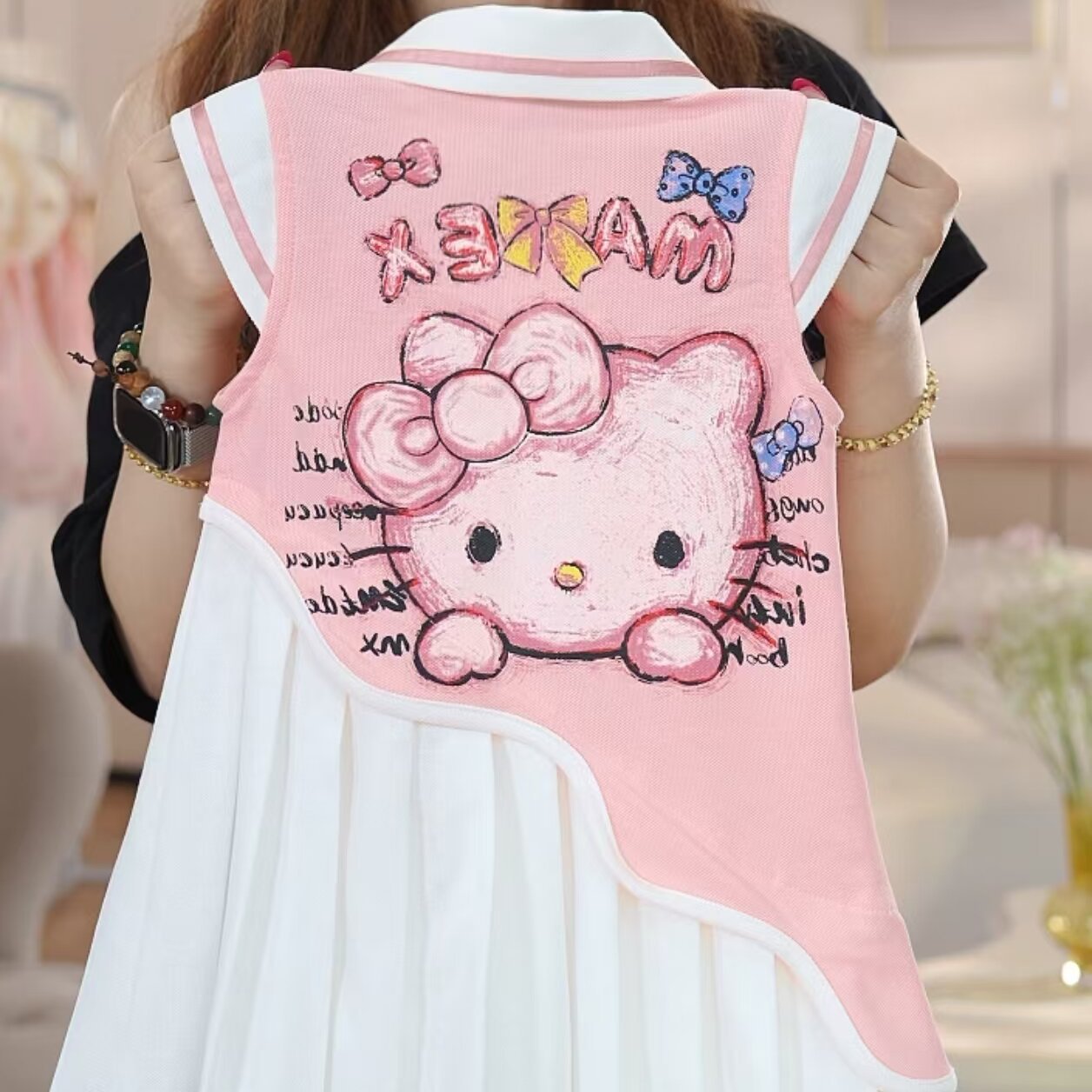 女の子の夏のスカート 2025 新しいベビー夏服甘い漫画猫プリンセススカート女の子ポロドレス