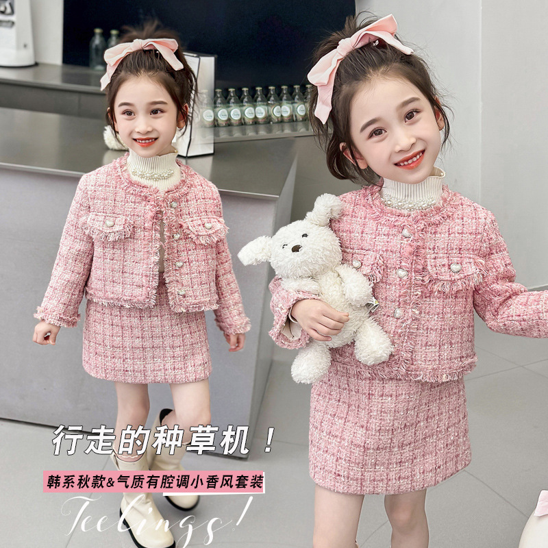女の子ワンピース春秋2025新作洋気子供小香風コートスカート春女の子おしゃれスーツ