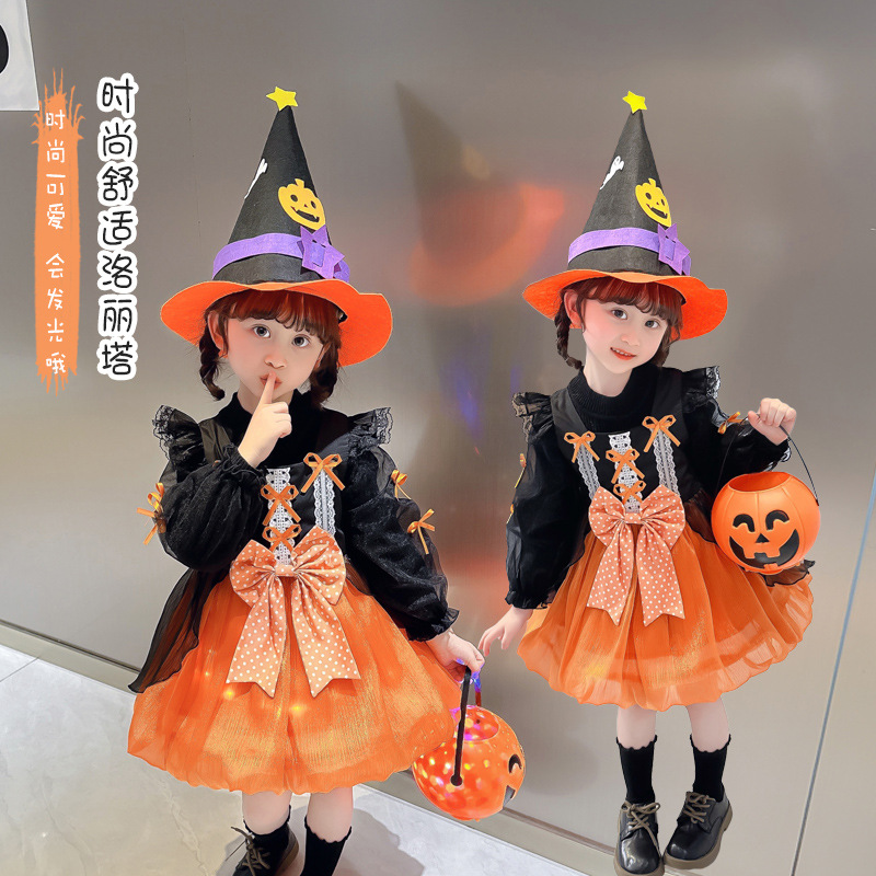 ハロウィーン子供服女の子魔女coos服女の子春と秋のドレスカボチャロリータプリンセスドレス潮