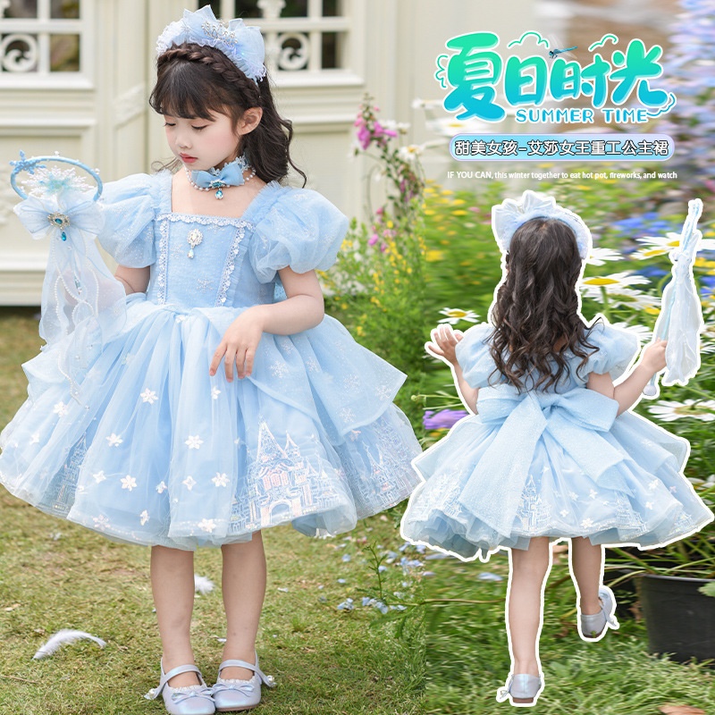 女の子ロリータプリンセスドレス 2025 夏の新しい子供のエルサアナと雪の女王ドレス誕生日ドレスドレス