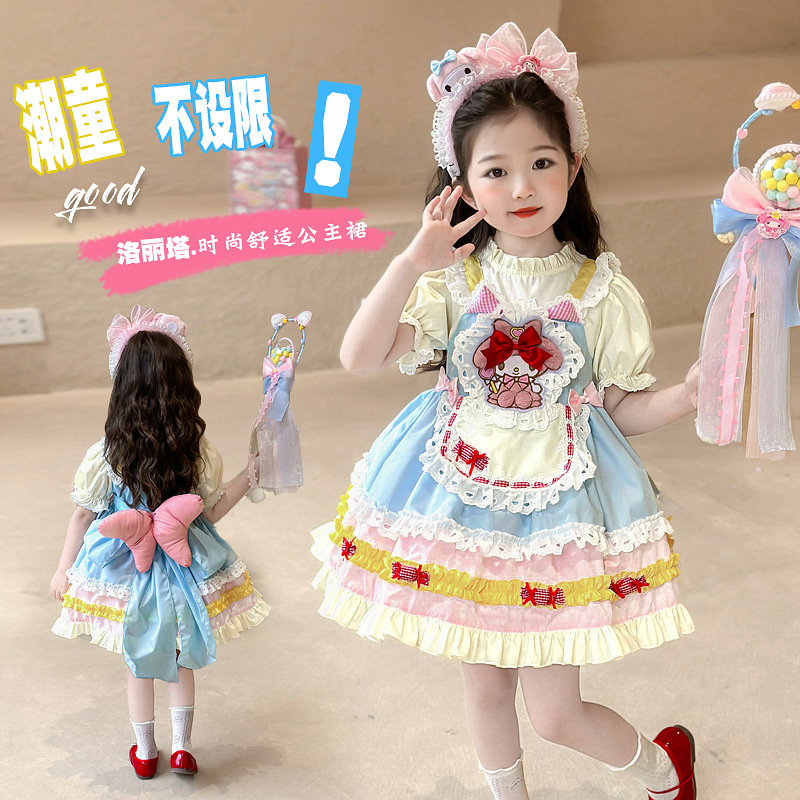 女の子のポニーロリータのワンピース2025春秋の新型の女の子の赤ちゃんの漫画の誕生日の王女の小さいスカート