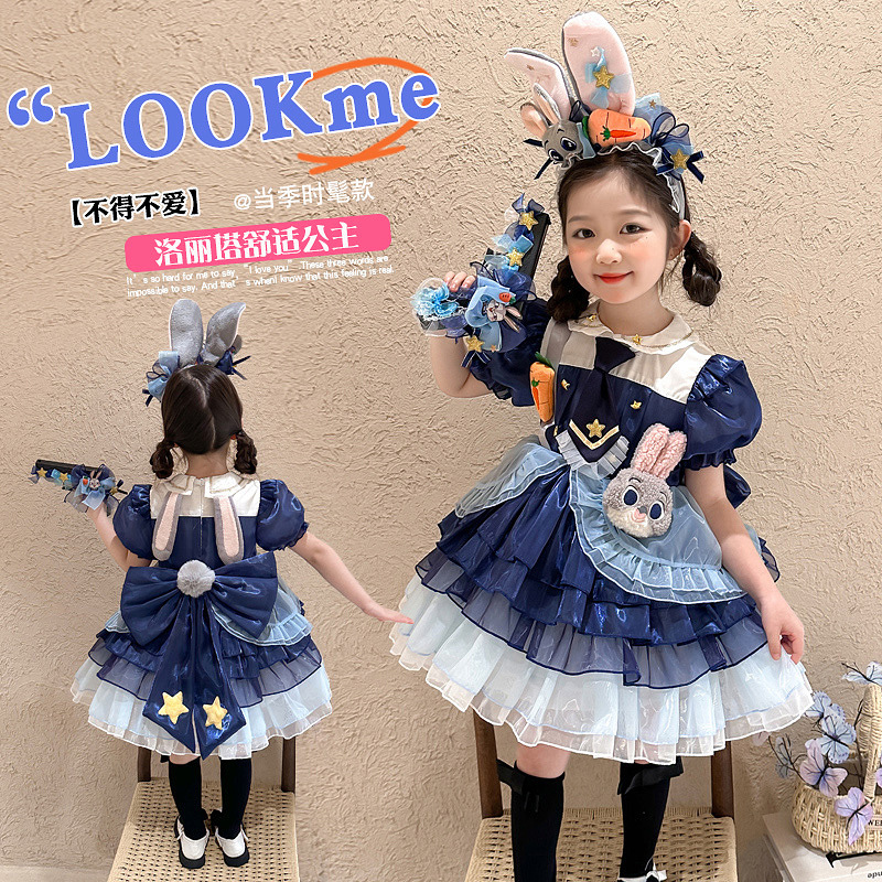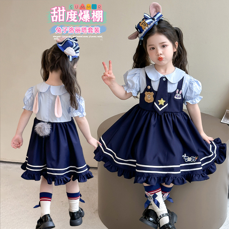 女の子ドレスサマードレス 2025 新しいウサギ警察官服子供の夏のカレッジスタイルベビープリンセススカート