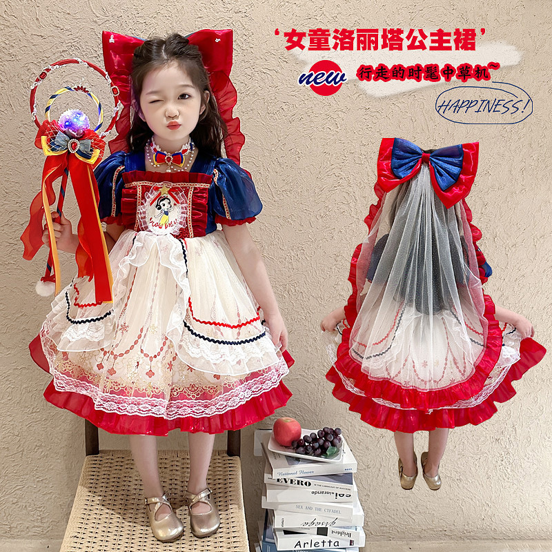 女の子ロリータプリンセスドレス 2025 新しい子供の夏スタイル白雪姫ドレス誕生日ドレス
