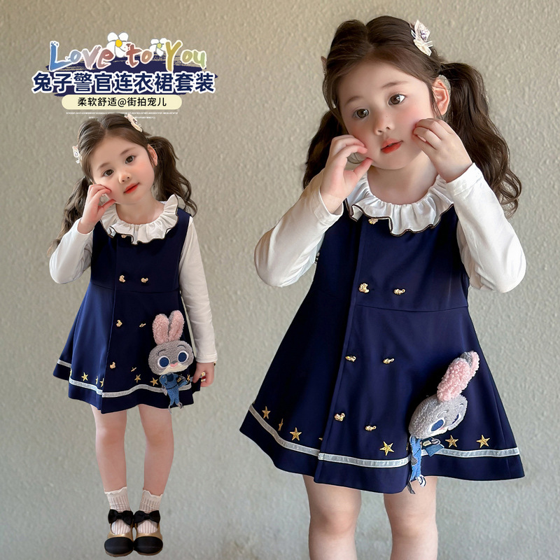 女児春秋ワンピース洋気秋ジュディウサギ警察官子供服女の子秋服学院風スカート