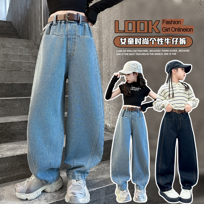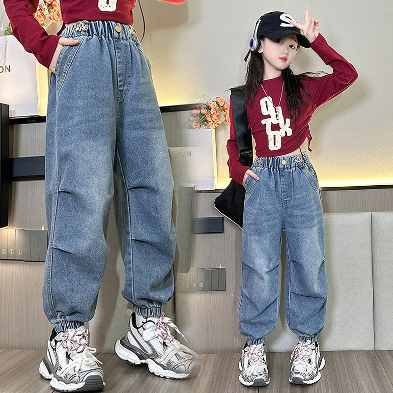 女の子ズボン春秋タイプ2025新型子供服春の洋風ゆったりジーンズ