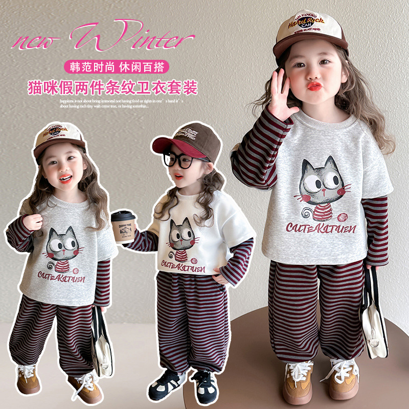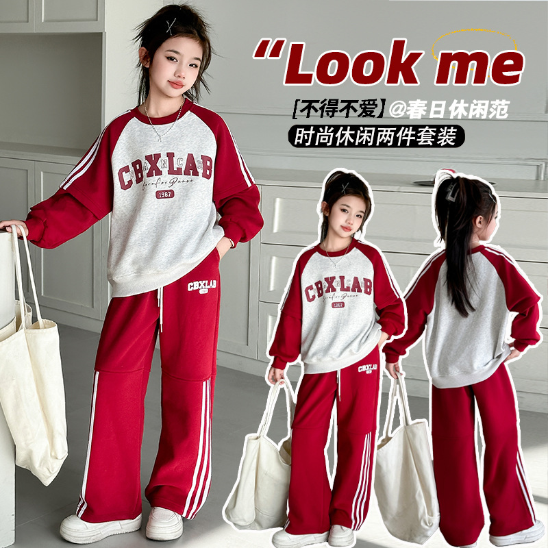 女の子セット2025新型秋服子供のファッションファッションスポーツウェアの中で、子供服春秋タイプの2点セットのファッション