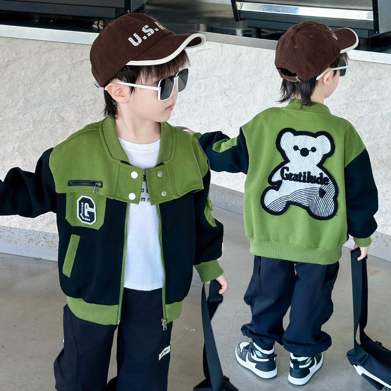男の子の上着の子供の春秋の金のジャケットの男の子のファッションのクールな漫画のプリントの上着の中で子供の秋の服