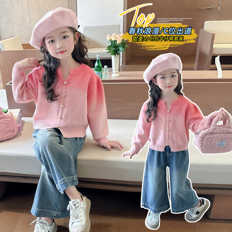 女の子のセット春秋2025新型子供の春の洋風の赤ちゃんのファッションのセーターの春の服の広い足のズボンの2つのセット