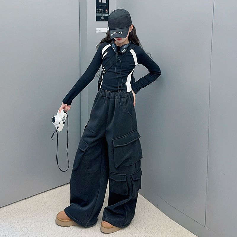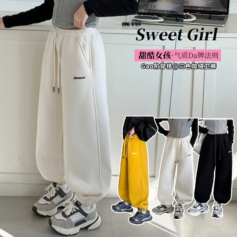 女の子のベルベットのズボン2024の新しい女の子の大きい子供の洋気はカジュアルなズボンの女の子の学生の保温のスポーツのズボンの潮を厚くします。