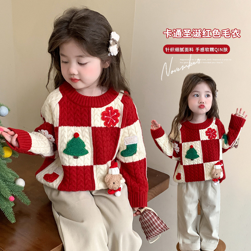 女の子セーター秋冬2024新作女の赤ちゃん冬服女の子セット子供クリスマス冬服子供服