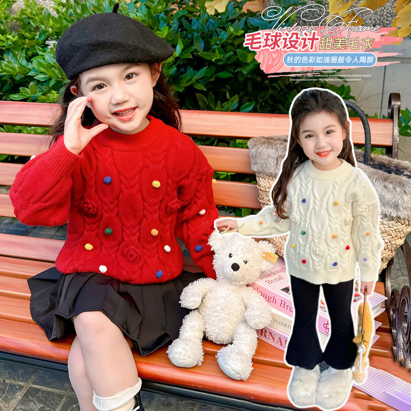 女の子用セーター2024秋冬新作子供用洋風ニット