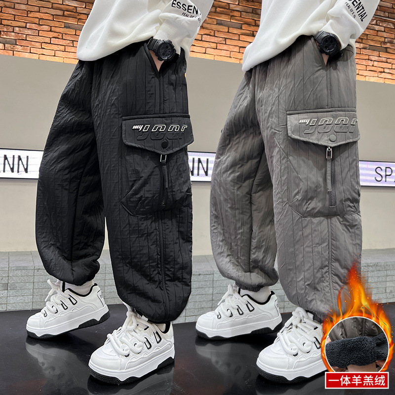 男児の子羊のズボンにベルベットをつけて秋冬を厚くしてくれる。