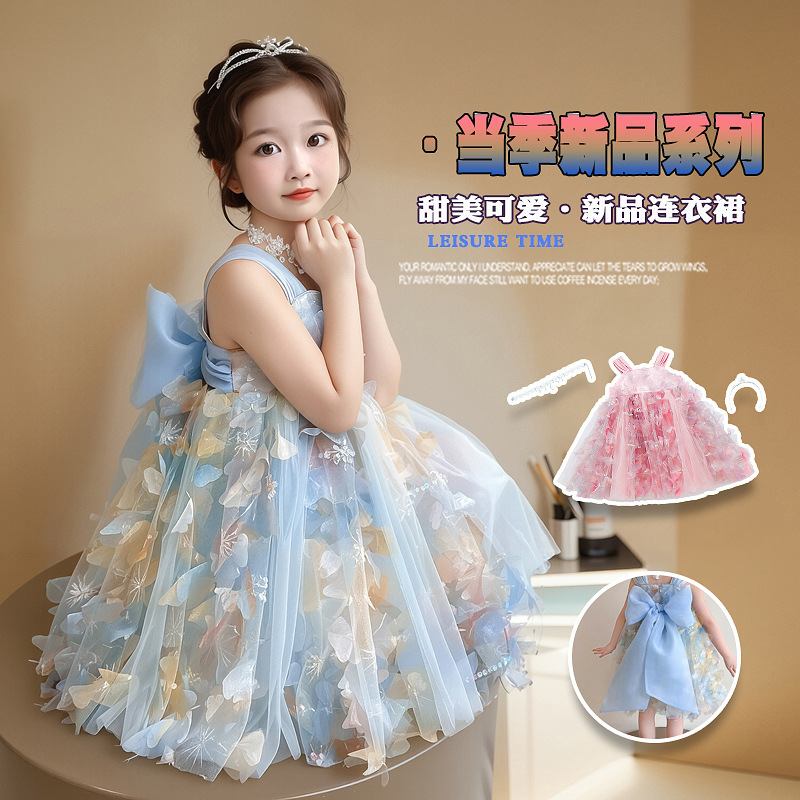 女の子のワンピース2025年夏の新作の女の子の甘い風の網の糸の王女のスカートの誕生日のドレスのベストのスカート